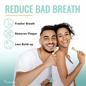 • 90% of Bad Breath originates from the Tongue, this is why Oral Hygiene is important Clean your Tongue effectively with these high quality, Bamboo Tongue Scrapers & Bamboo Charcoal Toothbrush. The Natural Breath Freshener! CulmBoo makes great quality self care products for women and men. Daily self care combined with oral rinse to promote good breath and Oral Health. Bamboo tongue scraper for kids & Adults.